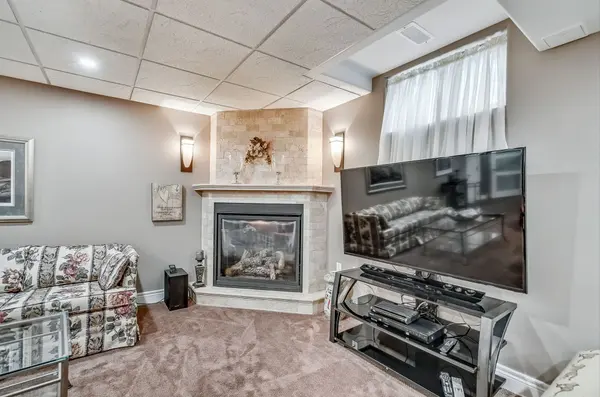 Upstairs features a spacious primary suite with walk-in closet and 4-piece ensuite, plus two additional bedrooms and a full bathroom. The finished lower level with a cozy gas fireplace adds extra living space along with laundry and ample storage.