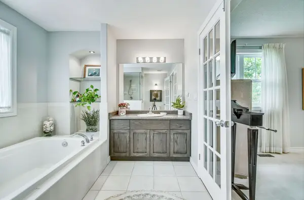 Welcome to refined townhome living in one of Ancaster’s most desirable communities. This beautifully maintained 3-bedroom, 3-bathroom end-unit executive townhome offers over 2,000 sq. ft. of finished living space with a bright open-concept layout filled with natural light. The kitchen flows seamlessly into the dining and living areas, with walkout access to an oversized deck overlooking a peaceful conservation backdrop with no rear neighbours.